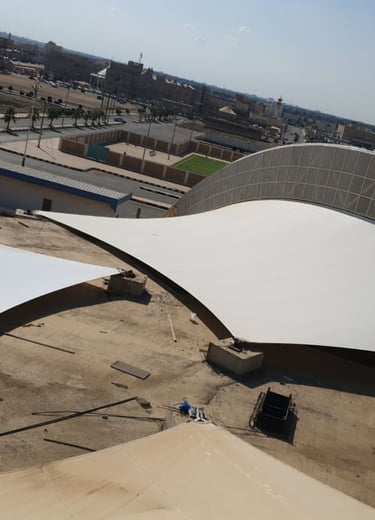 نقدم خدمات تصميم وتوريد وتركيب مظلات الشد الإنشائي بأقمشة PVC وPTFE وهياكل متينة، توفر حماية عالية ومظهراً عصرياً للمساحات المفتوحة.