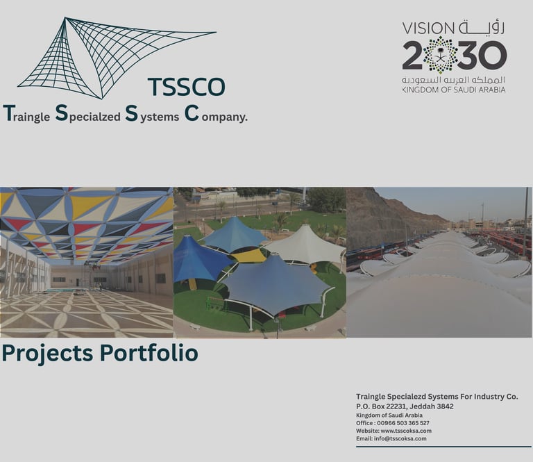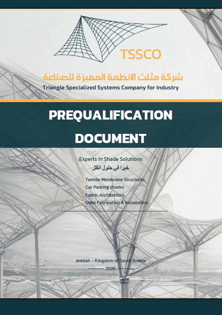 نضع بين أيديكم مجموعة من الملفات التعريفية التي تعكس خبراتنا في تنفيذ مشاريع المظلات والهياكل الشد الانشائي، وتشمل الكتلوج، الملف التعريفي، والملف التأهيلي، لتزويدكم بكافة المعلومات عن خدماتنا وإمكانياتنا.